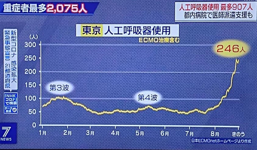 今日も県庁幹部と政党所属の議員に『自衛隊の野戦病院』働きかけについて話しました。 (第3波とは今年1月の事です。写真はNHK)