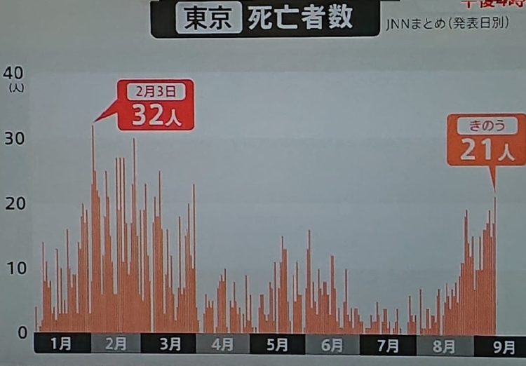 高齢者の9割(88%。全国)がワクチン2回目接種が終わっている今と、全く接種していなかった2月とを比べ、死者が今20人くらい・・・。