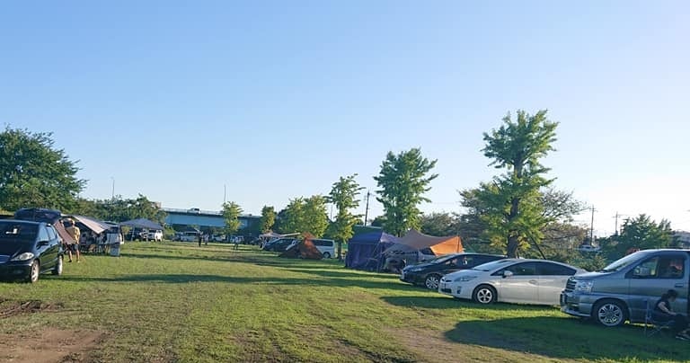 狭山・入間川 昭代橋 脇のスタバのある公園