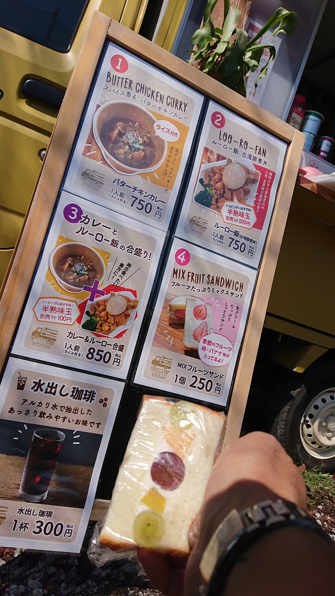 現物のミックスサンドを、メニューと合わせて撮ってみました。