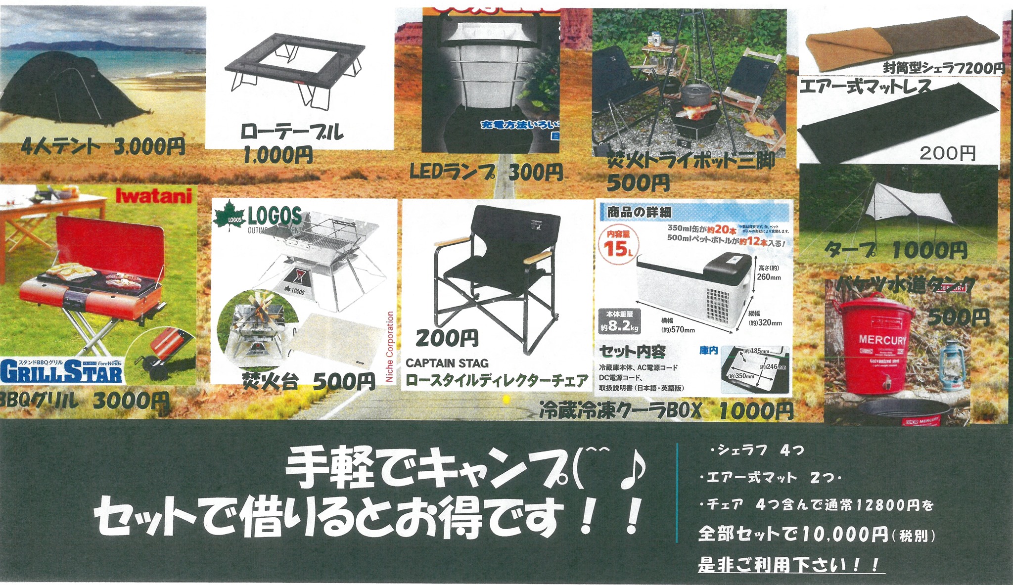 アウトドア用品も同時にレンタル出来る。買う前に まず体験してみるのに、持ってこいですね。