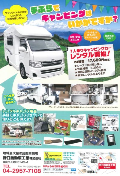 レンタルのキャンピングカーのある狭山・野口自動車。