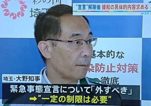 大野知事「埼玉県としては『まん延防止等重点措置』への移行が『最も良い』という意見が(専門家の中で)多かった。それぞれの県で考え方が違うので、1都3県で最低限のラインでの合意が出来た。(来月以降の県内の対応について)明日(月)か あさってには説明したい」と述べました。
