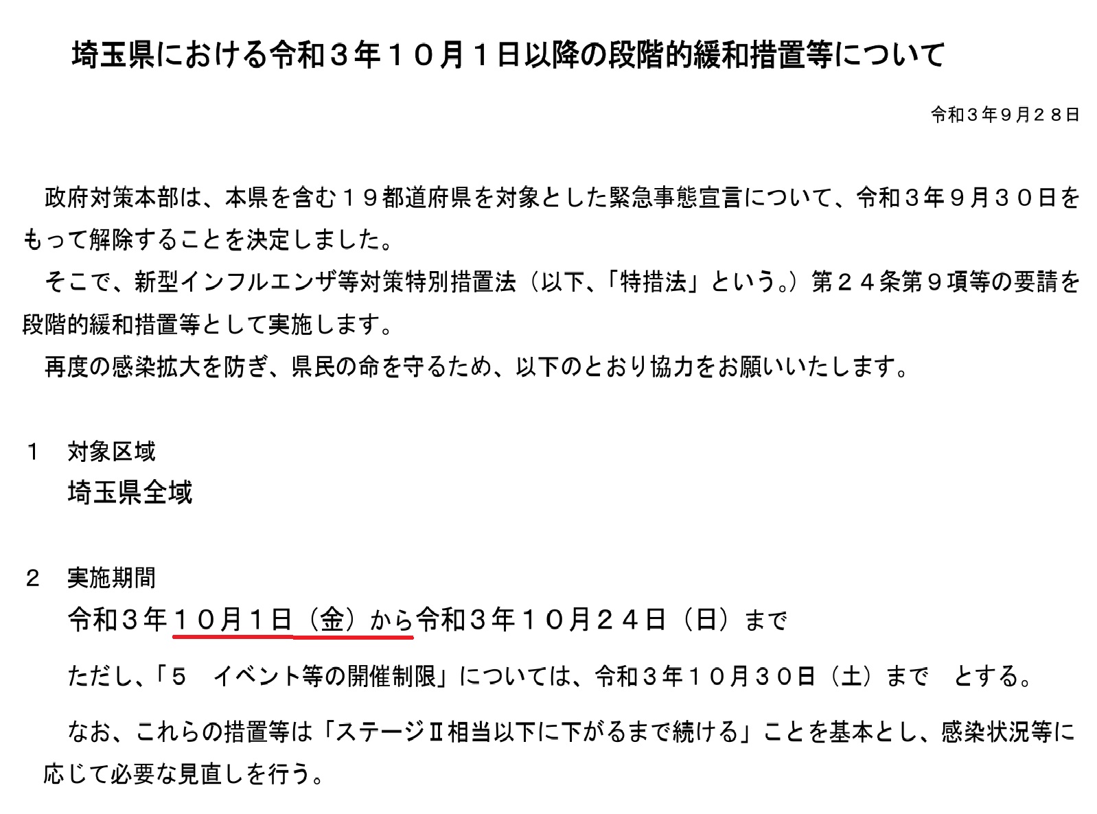 市外の飲食店で「9月30日から営業」と掲げている居酒屋を、🚴自転車通勤で見かけました。「30日で解除」と言っている事がそうなっているのだと思います。