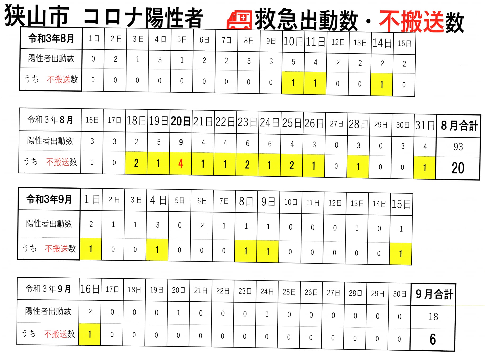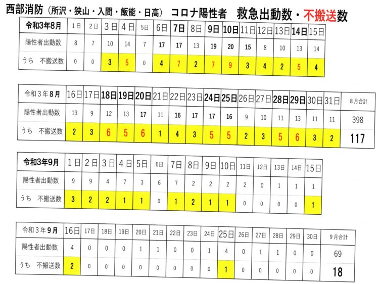 9月26日以降は、病院での診療・入院をコロナ患者が求めて、搬送されない事(不搬送)は 無くなったとの事です。