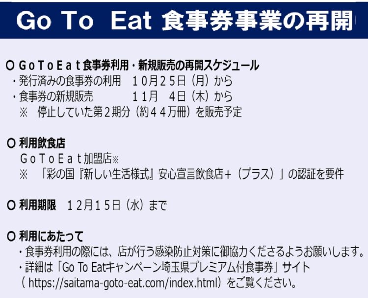 【GoToイート】食事券の再開 埼玉県