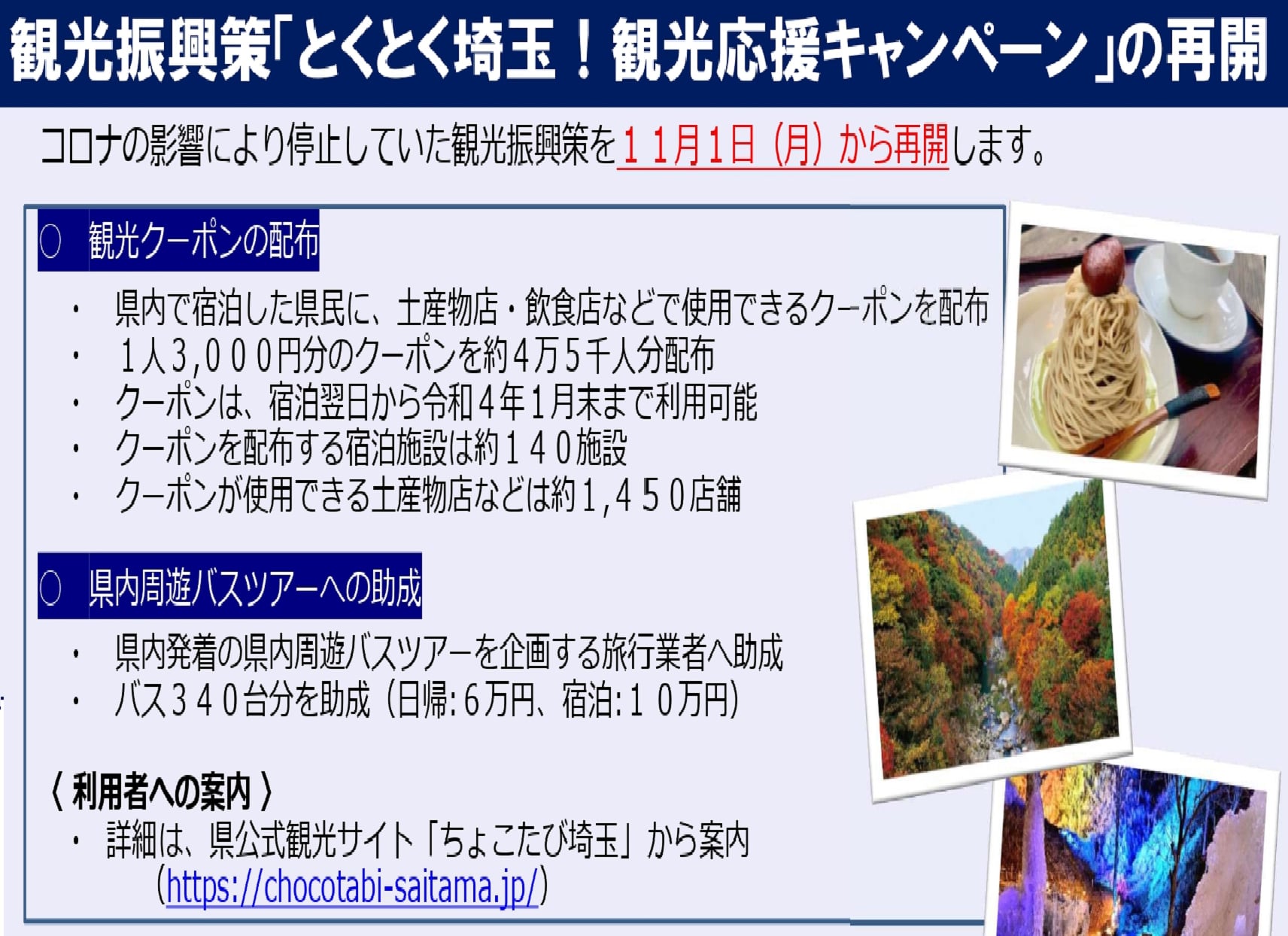 観光振興策『とくとく埼玉!観光応援キャンペーン』再開 11月1日~