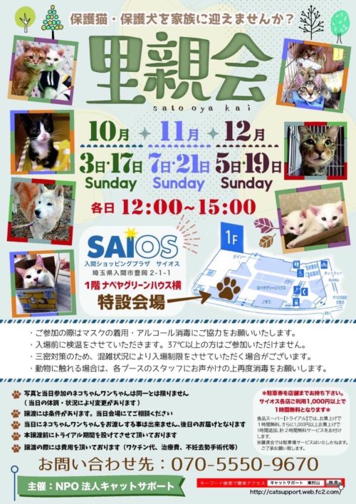 ファニーキャットさんの次回 譲渡会は、21日㊐12~3時、入間市サイオスで。
