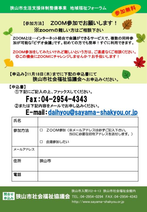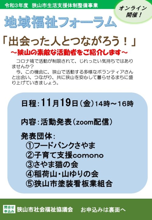 地域福祉フォーラム 「出会った人とつながろう!」参加者募集のお知らせ-狭山市社会福祉協議会
