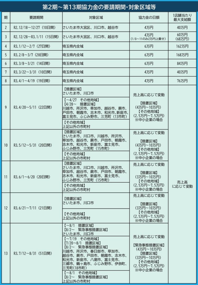 埼玉県感染防止対策協力金 追加申請受付(第2期から第13期まで)について-埼玉県