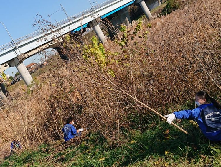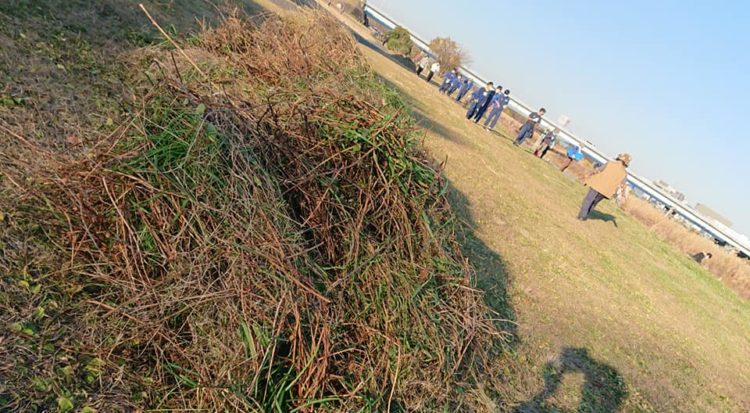 狭山・入間川 河川敷 高校生など42人で草刈り
