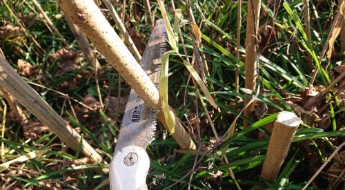 桑をノコギリで切る作業。私も。