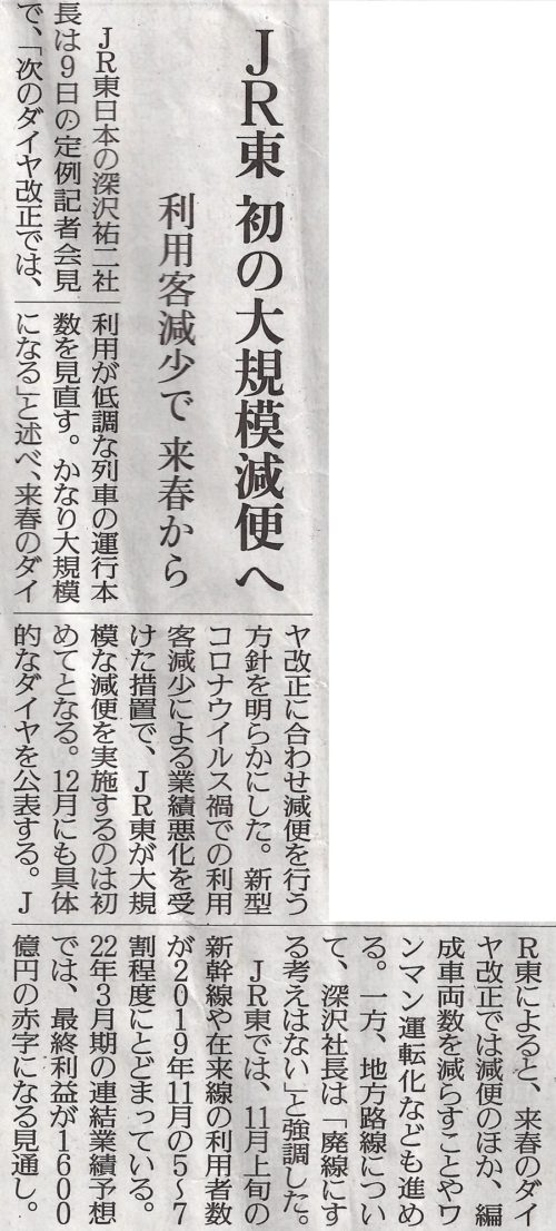 『JR東日本 初の大規模【減便】』は、私鉄にも影響を及ぼす可能性があると思い、県議会には(西武鉄道など)県内各鉄道路線の議員連盟があるので、影響を受ける恐れのある5人の県議と話し(明日㊊は県議会で八高線の議員連盟の会議があります)、県庁の鉄道政策の担当管理職とも、鉄道利用促進について打合せしています(鉄道会社にただ要望するだけでは仕方ないので、利用が増えるよう)。