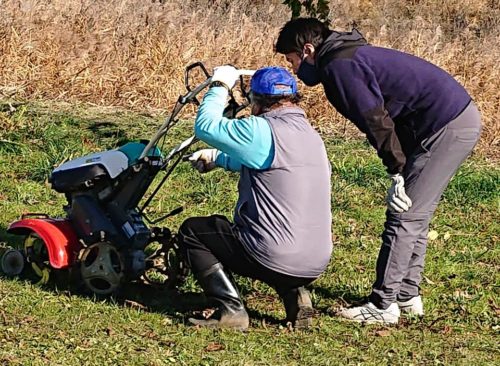 ベテラン ボランティアから若手に操作方法の説明。