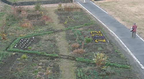 新富士見端から見た富士山の形をした花壇。