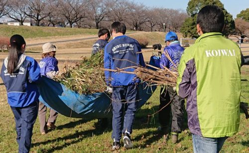文理高校ラグビー部は歴代通算50回目の参加(今回17人)の他、スターバックス・小岩井乳業さんや、『入間川の岸辺を美しくする会』ボランティアさん、市役所職員7人がボランティア参加。