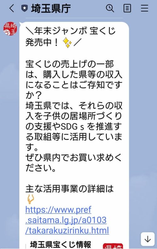 宝くじの売り上げの一部をSDGs予算に使いたいという事を、⇩ 県庁公式LINE・HPに載せてもらいました(9日午後)。