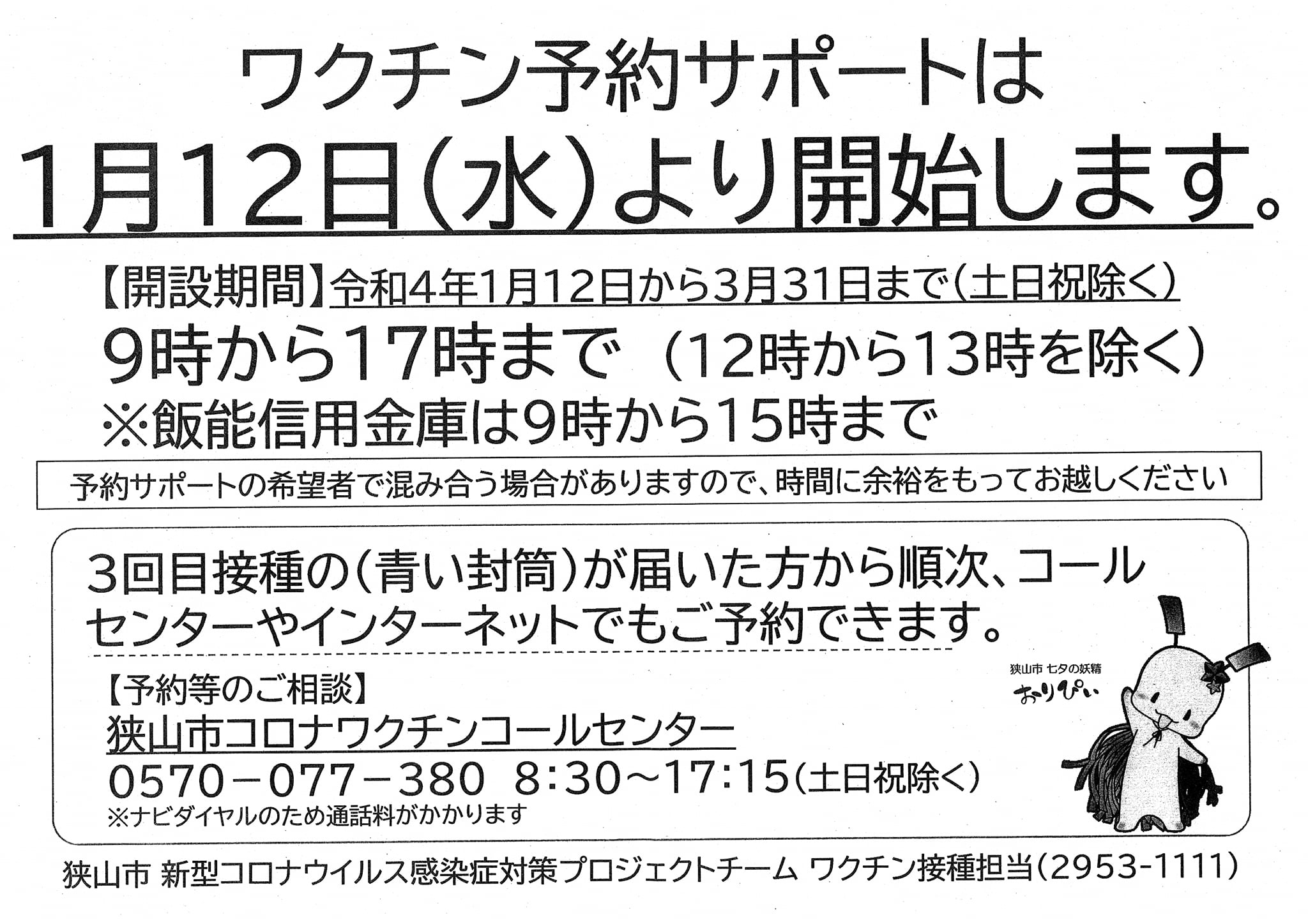 3回目 ワクチン『接種券』発送と予約 狭山市