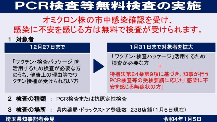 【無料PCR・抗原検査】 埼玉県予算で