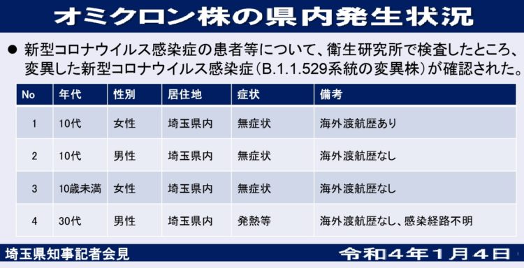 📷4日現在、オミクロン陽性の県内状況。5日現在は、7人。