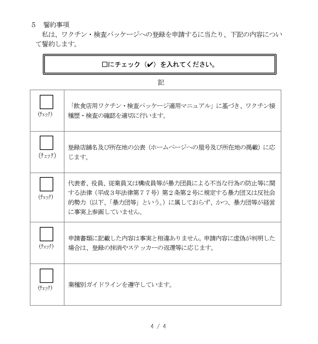 『5 誓約事項』と書いてありますが、『2~4』は、店舗数の多い記入欄です。