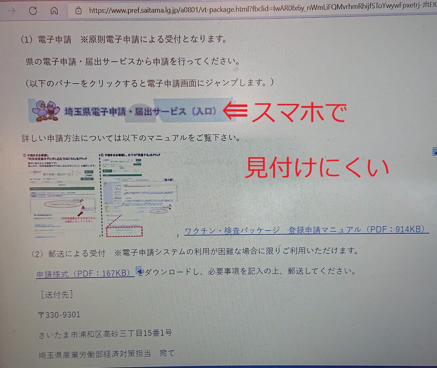 飲食店の方が「ワクチン・検査パッケージ、どうやって申請すればいいの?」とおっしゃるので、自分でやってみたところ、電子申請のボタンがどこにあるか探すの戸惑った(😭)。郵送申請のほうが目立つ。