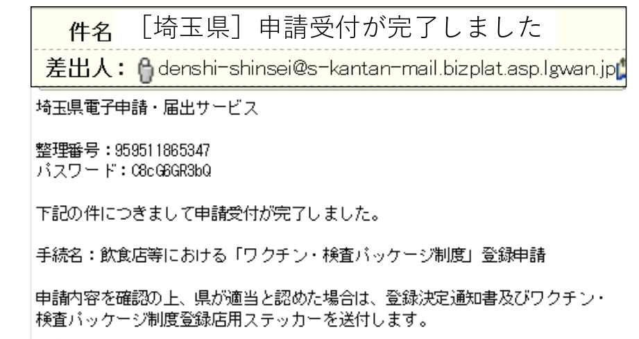ネットで申請されたお店の方から⇩このように『完了通知メール』をお店に貼ろうかとおっしゃる方もおられます。