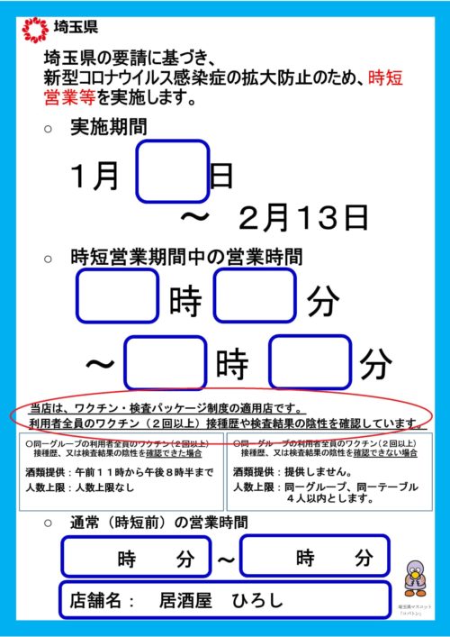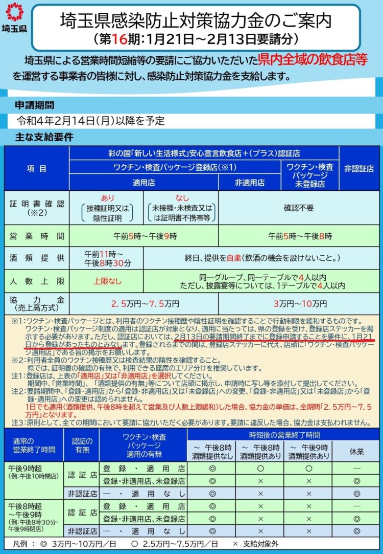 飲食店等における「ワクチン・検査パッケージ制度」について-埼玉県