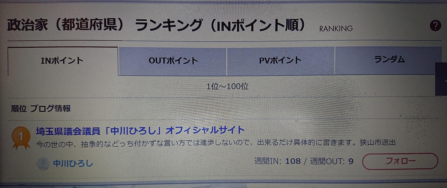 ひろしHP 全国都道府県 政治家ランキング1位