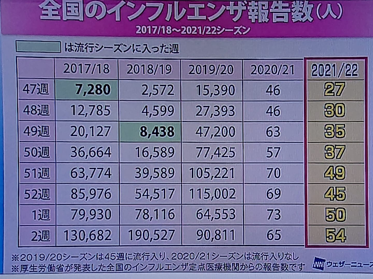 【インフルエンザ患者数は、一昨年に比べ、2500分の1】