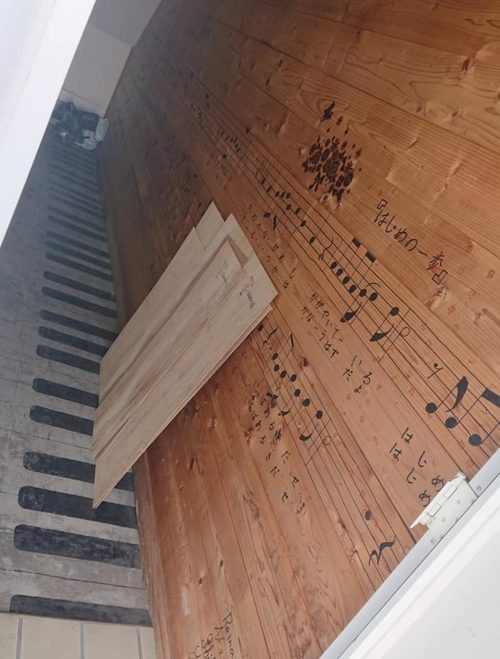 📷写真は、ひろし事務所お隣の音楽教室。入口の地面に🎹ピアノのペイントがしてあり、壁の譜面は生徒さんの✋手書き(^O^)。事務所にいる時、ピアノなど楽器の音色が聴こえて来て、うれしいです。