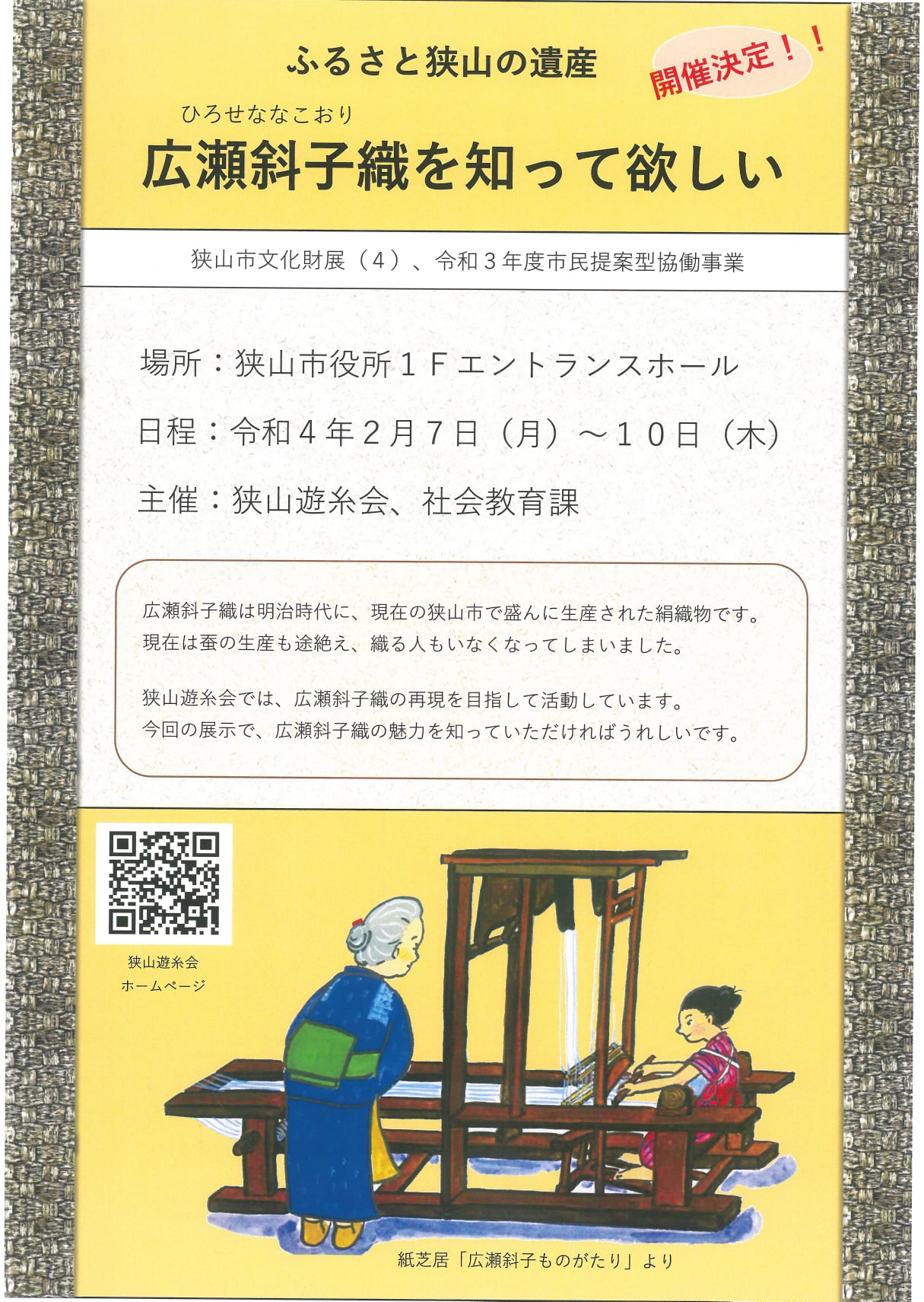 狭山市広瀬が【発祥】の織物 『斜子織(ななこ おり)』
