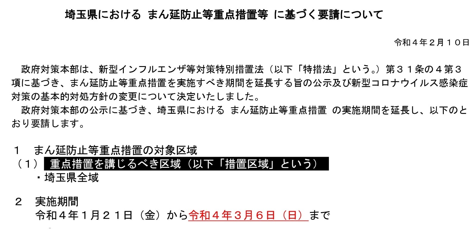 『6日まで』 正式に県庁が決定し、市内飲食店組合の役員さんなどに連絡しています(中身は変わりません)。