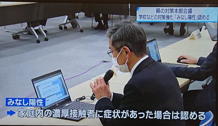 先日、予告で私から申し上げた『みなし陽性』が県庁で正式に決定。