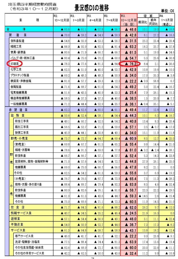 「『印刷業界が1番 景気が悪い』と思っている」と県庁職員から聞きました(製造業の中で)。