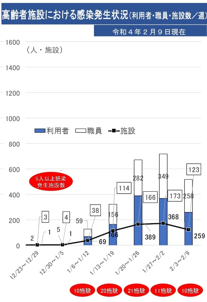📷写真は、県内の最新の状況。高齢者より保育園がシビアな状況なのが、このグラフだけで分かると思います。現場に具体的に伺っていると、職員が陽性・濃厚接触者になってしまうと、とても厳しいと感じます。オミクロンは特に防ぐのに限界があるのに、これまでのようにクラスターと言うのはどうかと思います。