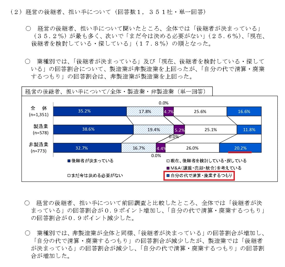 ⇩ご覧の県庁資料 経営者が『自分の代で清算・廃業するつもり』の回答で、日本の衰退をひしひしと感じます。