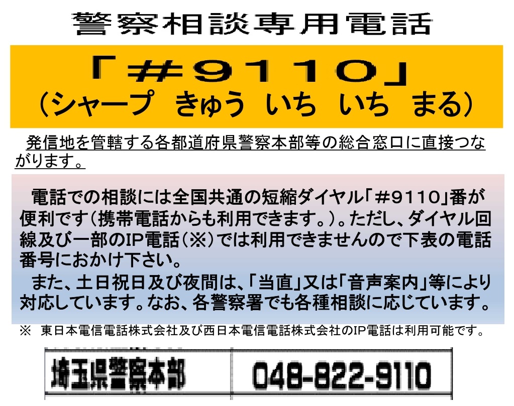 (⇩このようなポスター。東京はお金があるから都内には貼ってあるけど、東京との連携が無いので、埼玉などには無い。県ごとに発行するのはムダだから、防災・警察のPR・啓発は、東京との連携を求めています)