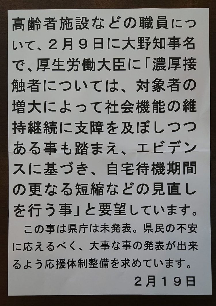 自分達(県庁だけ)で出来る事は限られているからこそ、どう動いているのか(途中経過でも)大事な事を伝えるコロナ担当部署の外側からの仕組みを作らなければなりません(もう 丸2年)。📷写真は、事務所前に掲示したものです。
