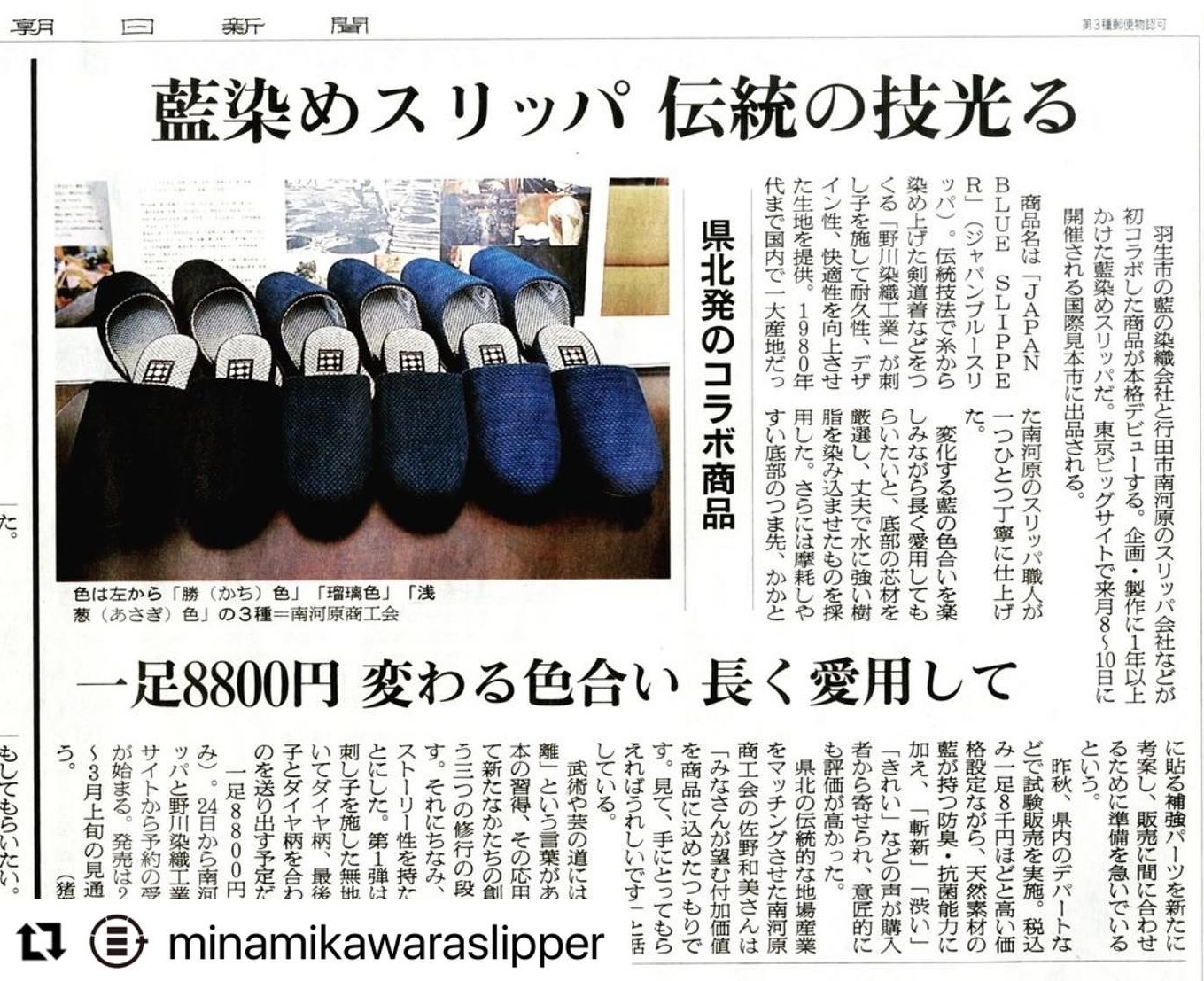 羽生市・野川染織さん(大正3年創業)に(コロナ対策が一息ついたら)取材に行きたいと思っています。日本の『生活文化』は輸出など伸びしろがあると思っています。