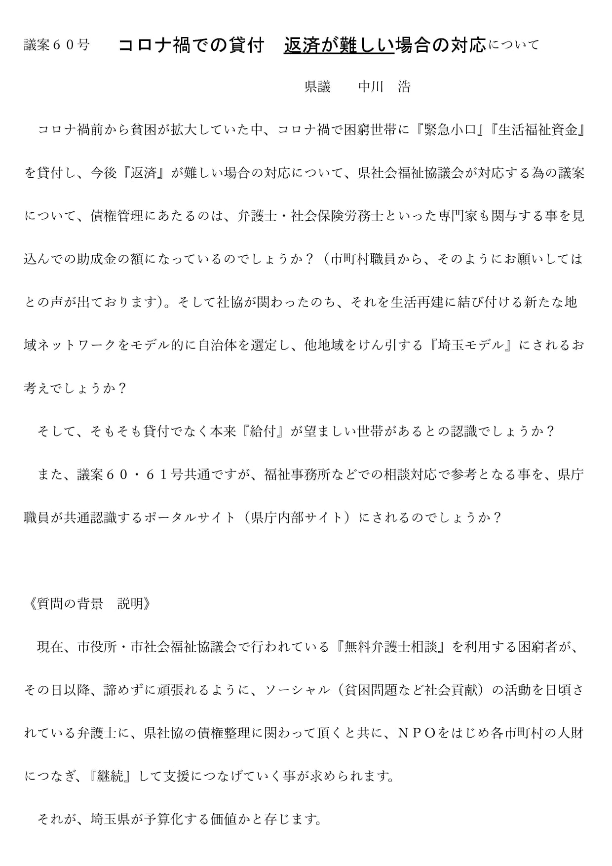 (岡 県議(白岡市)が『自殺対策』を今日、知事に質問していました)