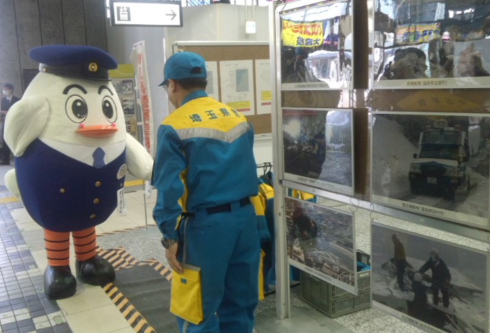 埼玉県警の『東日本大震災の警察活動写真展』が今朝から1時まで大宮駅の改札前で行われ、県警 災害対策課長から説明を受けました(今朝新聞で知って、さいたま新都心に向かう途中に寄る)。