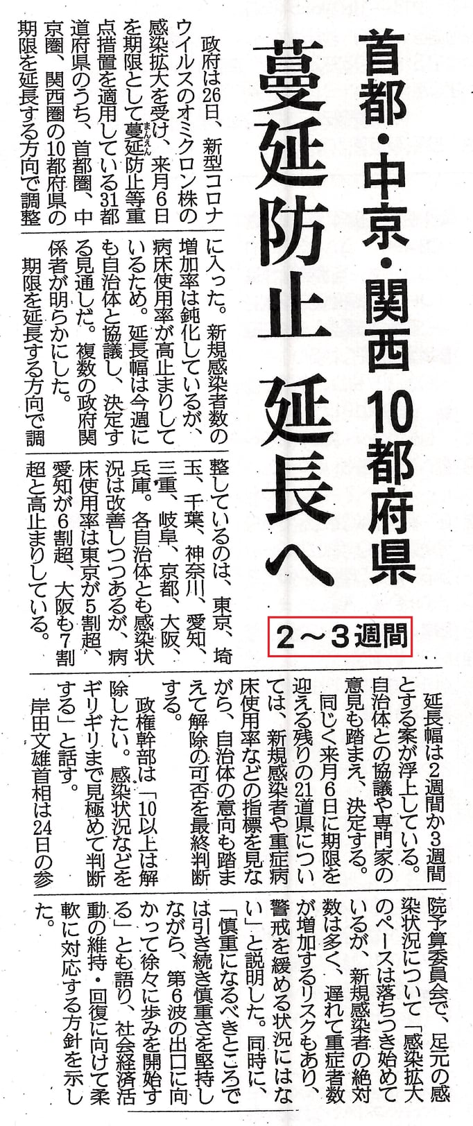 『特別措置』と国政で言っていますが、これまでの延長上の措置なので、補償でもありません。(現在のまん防は3月6日まで。3週間だと27日)