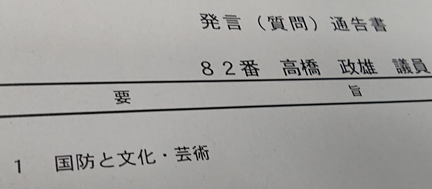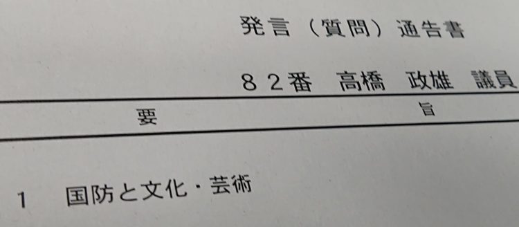自民の高橋県議(緑区)から「文化は武器になる」「文化芸術は『不要不急』なものではない。どの分野と比べても最重要」と今日(木)議会質問。