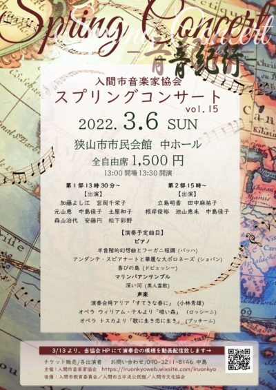 狭山市で6日(日)、友人が行う ♬ コンサート。司会の方が『世界で侵攻が行われている地域に想いをはせ、早く平和になる事を願い・・・』といった主旨のアナウンスもされるとの事。