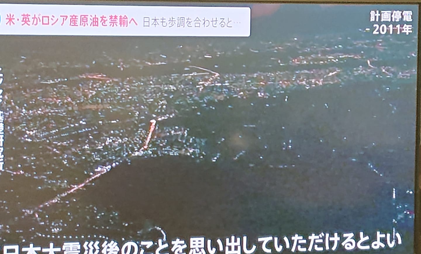 既に値上げで困窮家庭が困っており、残念ながら今後更に値上げを全ての方が予想していると思います。依存している以上、消費を減らしていかないと、日本国としてプーチンに毅然とした態度に出られません。今後アジアで何かあった時も こうなります。 (📷写真は、11年前の『計画停電』。TBS)
