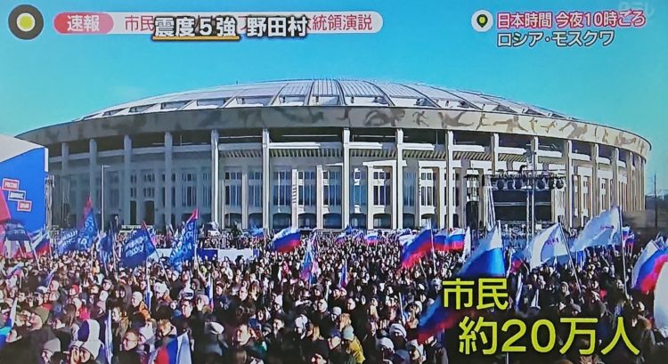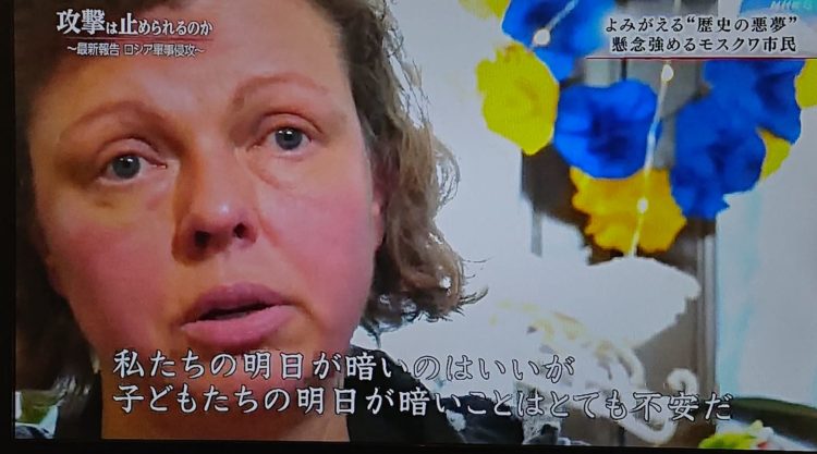 ロシアで反戦活動をされている方々に敬意。私たち日本の反戦運動とはレベルが違う。プーチン侵略は、今後日本などでの貧困が悪化する。なんとかする。 (写真は日テレ)