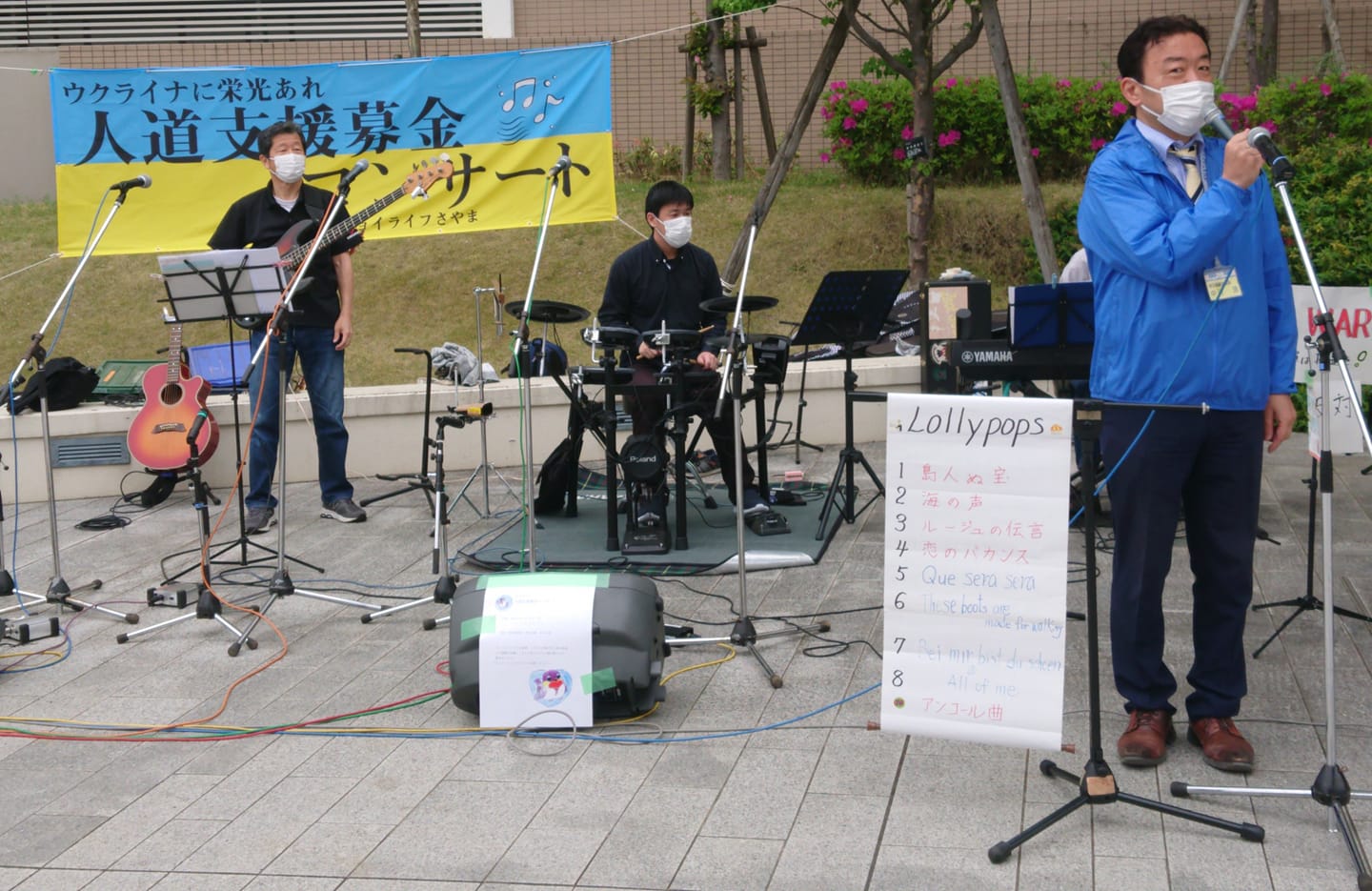 ウクライナ支援募金コンサート💙💛狭山市駅西口にて🎙️ライブ中。
