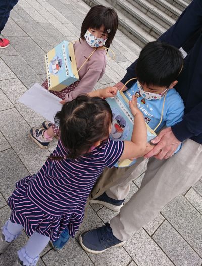 👧小っちゃな子達👦も色々手伝ってくれました。ウクライナについての貼り紙の掲示も。手でちぎれるテープを、ちっちゃな指で自分で一生懸命ちぎって貼っていました。ありがと😊。