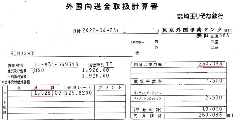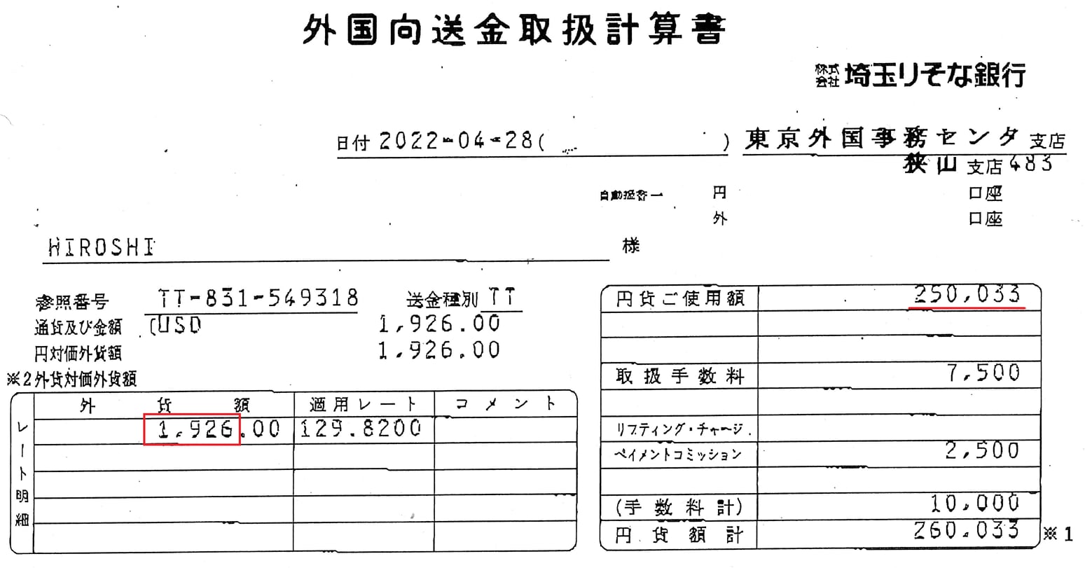 (蛇足ですが、送金手数料などは自費で対応しております)